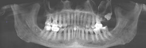 A 16-year-old girl undergoing a recall exam had a suspicious finding on a panoramic radiograph.