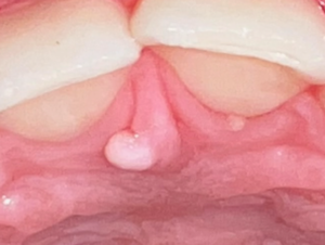 A 17-year-old girl presented to the pediatric dentist for a recall exam with a painless, small nodule.