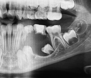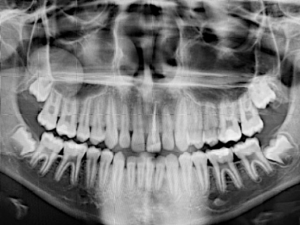 A 22-year-old man was referred to an oral surgeon because of an unusual finding on a panoramic radiograph.